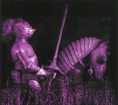 1. Det Nye Riket Vårt hat skal vinne. Vår ondskap skal gro. A feste seg i unge sjeler. Den siste krig skal vi vinne, Og de godes blod skal falle som regn. Deres korte sjeler skal samles. Vi skal rå de over kaos og evig natt. Vi skal glemme de kvinnelig vikante mødre, Og utslette alt. Et rike skal reiset seg, I asken av brennte hjem, Det er kun en herre hersker, Vi heller deg Satan de sterkes konge. Din tid er kommet. [English translation:] [The New Kingdom] Our hate shall win Our evil shall grow To fix itself in young souls The final war shall we win And the blood of the good shall fall as rain Their short souls shall be gathered together We shall reign over chaos and everlasting night. We shall forget the womanly weak small mother And end all A kingdom shall raise itself In the ash of burned homeland There is only one master ruler We pay tribute to you Satan the king of the strong Your time is has come 2. Under Korpens Vinger 3. Over Bieknede Blåner Till Dommedag Langt om lenge det stormens blest Slår tidevannets sprekninger Slår hav på en skatt Har snart alle skogstjern frosset Og snøen dekker en fjelltopp Stripels kriger traust han var Som satte sitt mot i gammel tid Vandrer hen til dodoy skar etter sin bane Storgildt strid Bleser bleknede blåners land Overforlatt og dunkel jord Og bra for fedre som har seiret Norskehavets skumrings fjord Reisen gjennom dimmen er grå For meg er den et skall av forfars liv Blesne blekne blåner fjell Inn i en gråvendt natt Jeg reiser over bleknede blåners fjell Og her i mørket er jeg forlatt Snart har snø tynget hver en grend Snart har kong vinter beseiret jord Her hvor en gang de gamle falt i marken For å legge den øde øy Og gjøre den ren Over bleknede blåners fjell Jeg drar i dens dunkle mørkmanns ord Over land hvor fedres kamp har seiret Hvor vikingsverd satte tydelig spor [English translation:] [Over Fading Blue-Horizon Until Judgement Day] Long in length the storm's blast wind Strikes tidewaters' ?? Strikes ocean over a treasure Has quickly all forest-ponds frozen And the snow covers a mountaintop Soldier strong he was Who sat unafraid in old days Wanders to death-island chasm after his pure honourable conflict Faded blue-horizon's land Deserted and black earth And good for forefathers who have ruled The Norwegian ocean's dusk's fjord The trip through dusk is grey For me is it a shell of forefathers' lives Fade blue mountains on the horizon Into a turned-grey night Travel over fading blue-horizon's mountains And here in darkness I am deserted Quickly has snow oppressed every bough Quickly has king winter conquered earth Here where once the old fell in the field in battle In order to lay the island to waste And make it clean Over fading blue-horizon's mountain T avel in its dark dark-man's word Over land where forefathers' battle has conquered Where Viking-sword sat plainly in sight 4. Stien Svunne tider pajotuns vei Der over hoye klipper og fjell Har merket den med stov og aske Fra dengang alders hirder Vandret pa disse kanter Her gandviks bergtroll trampet frem I ondt og strrt et tussefolge Hvor ferdafolk fant stor en visdom Om landets skogsliv og morke sider Her pa stien som bukter seg uendelig frem Mellom berg hvor de vanskelig fremdeles Kan oynes i horisonten Sa storslatt det ma ha v?rt Og speide ut over alt dette Og a vandre sa alene og fri En hostkveld i en kald og lett take Slik som mange for meg har opplevd Og som mange for meg ha verdsatt Men minner blir glemt av tidens gang Og lite er her som det engang var Her som ellers har blader visnet Men falt ned pa en forfallen jord Hvor drommer og liv har dodd ut Men kanskje bak en stien Eller bak en gammel busk Sitter fortsatt..... hmm Og venter? [English translation:] Forgotten times on Jotuns path There over high cliffs and mountains Has marked it with dust and ashes From when Alders' herds wandered these grounds. Here Gandviks Cave trolls stamped forth In an evil and large goblin-herd Where rangers found a big wisdom About the lands forest-life and dark sides Here on the path who creeps eternally forth Between banks where they difficult still Can be seen in the horizon So great it must have been To look out over all this And to wander so alone and free An autumn evening in cold and light mist Like many before me have experienced And many before me have appreciated But memories are forgotten as time passes by And little is here that once were Here like elsewhere leaves have wizened But fallen down on a collapsed earth Where dreams and lives have passed away But maybe between a rock Or behind an old buch Sits still... And waiting 5. Glittertind 6. For All Tid Hver en tåre er frosset, Vår sjel er lenket, Vårt hat er blodig. All glede er svunnet, All latter er forsvunnet, Alt liv skal ende i død. I et kalt og øde landskap, Skal den sorte horde tre frem, Vår herre skal stige Opp for all tid, reise sitt rike igjen. Vår kamp skal belønnes, Våre nav skal prises, Våre sinn skal dra den grene, Og hans kjærlighet skal evig gå tapt. All moral skal forkastes, Du vil men du dør av skam. Nå er tiden kommet, Ja knus de godes ord, La oss for alltid bli herskere på denne jord. [English translation:] [For All Time] Every tear is frozen Our soul is linked Our hate is bloody All happiness is gone away All laughter is gone away All life shall end in death In a cold and deserted landscape Shall the black horde step from Our lord shall rise Up for all time, rise his kingdom again Our struggle shall be rewarded Our names shall be written Our minds shall pull the bough All morality shall be cast away You want but you die of shame Now is the time come Yes break the word of the good Let us for all time become rulers on this earth 7. Hunnerkongens Sorgsvarte Ferd Over Steppene Endeløst du kriget på steppene Nadeløst du herjet i fjellene Du tok dine seire med storm Knuste fienden ved din hand Åh, Attila! Gjør meg til din tjener Åh, Attila Ta meg til din hæær Du levde i mørket D